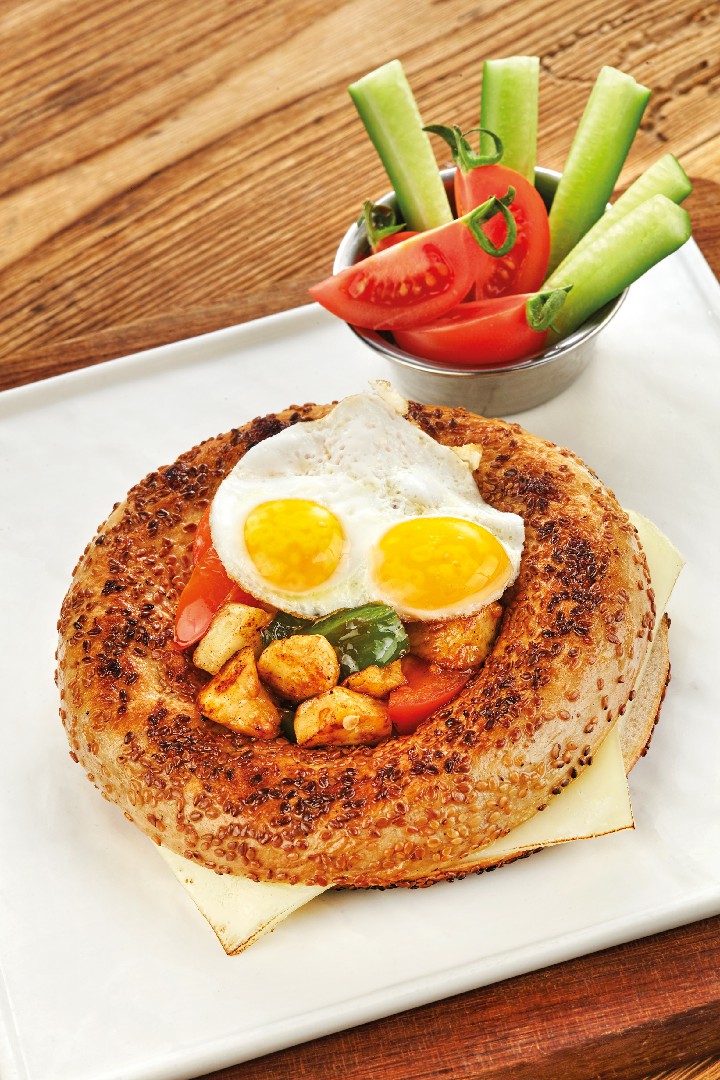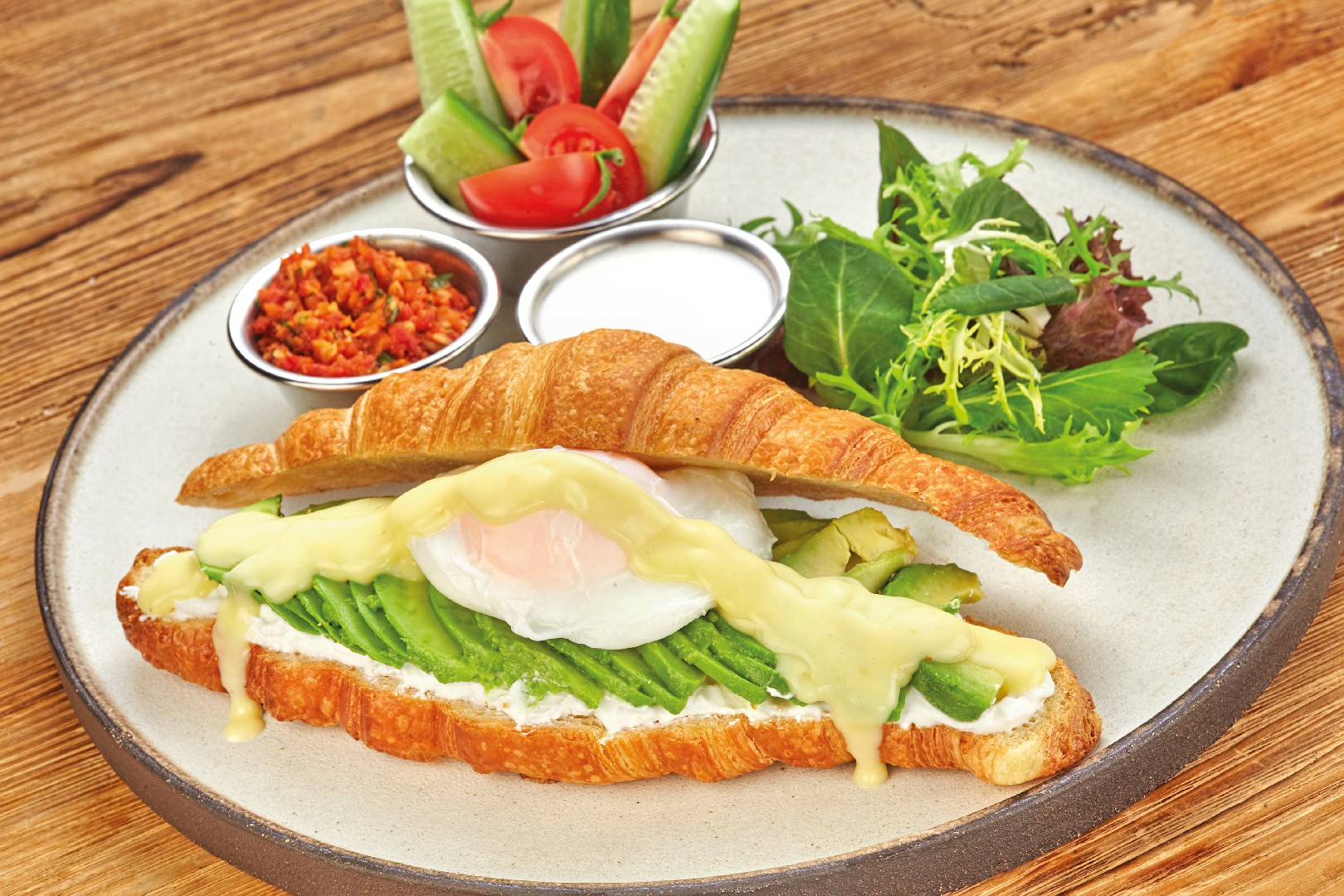 (Krem peynir, avokado, poşe yumurta üzeri hollandez sos, kuru domates sos ve sauri krem sos ile)