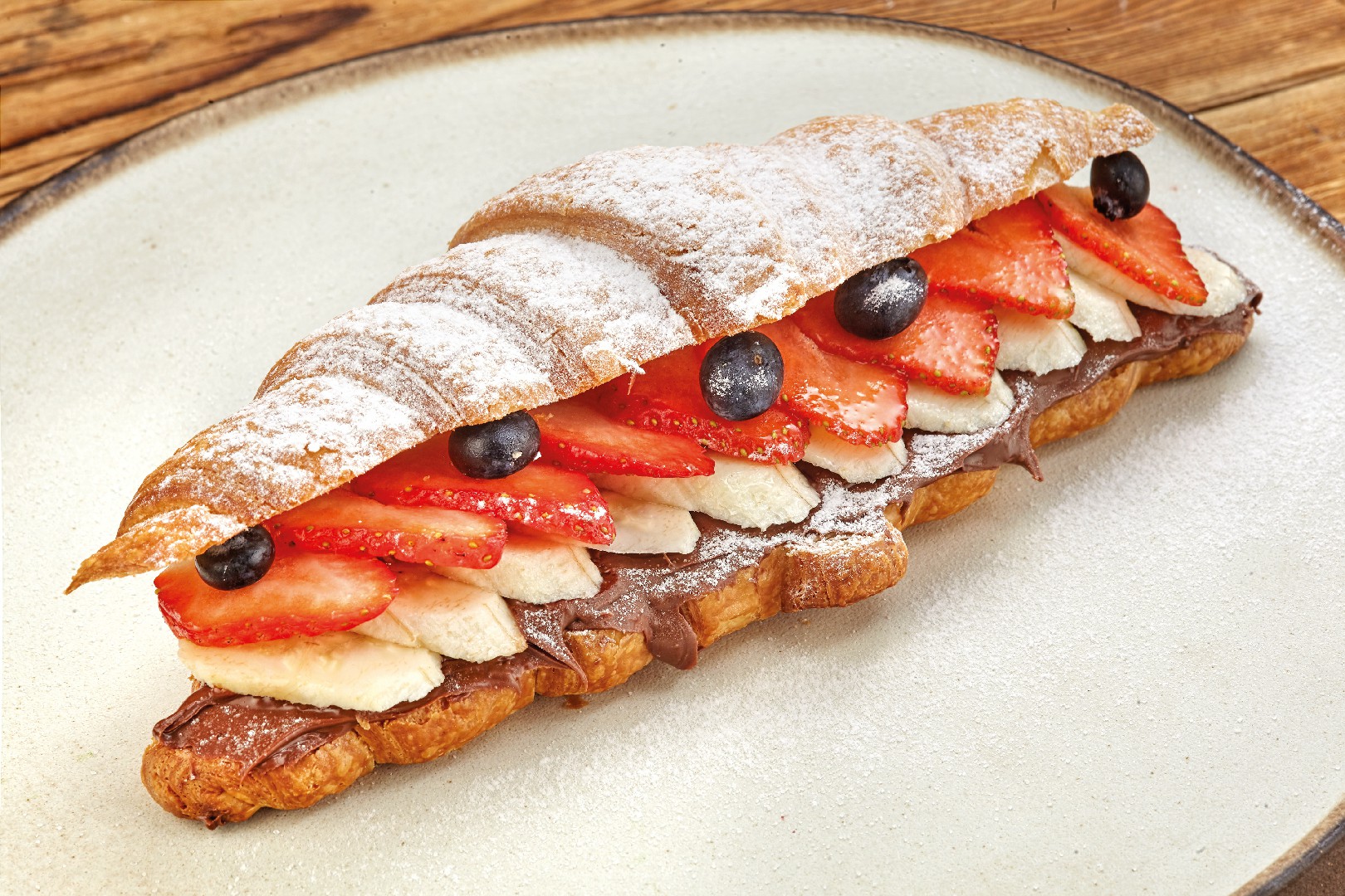 (Çıtır kruvasan arasında nutella, muz, çilek, yaban mersini)