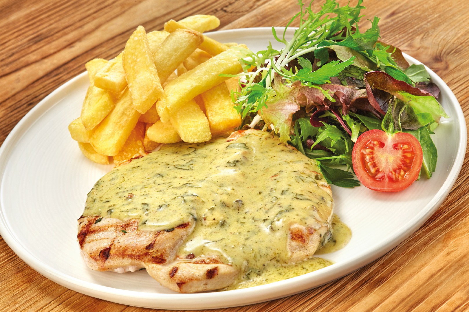 (Izgara tavuk göğüs üzerinde karışık baharat ile hazırlanmış özel sos)